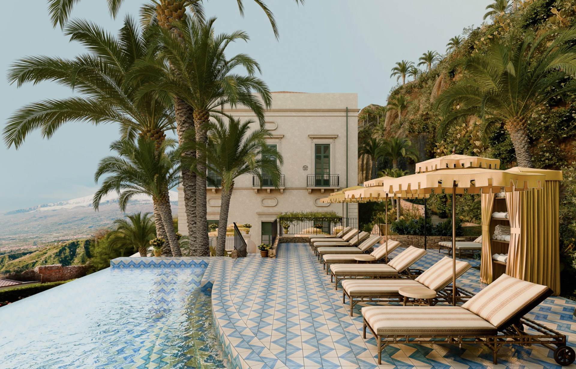 Perchée à flanc de colline, à deux pas de l’antique théâtre grec, la Villa Timeo renaît sous le trait de Laura Gonzalez, qui revisite les suites et la demeure avec élégance, fidèle à l’ADN du Grand Hotel Timeo. Ses 21 chambres uniques, le Bar Clementina, la piscine privée chauffée et les panoramas sur la mer font de ce lieu un véritable refuge sicilien où style, intimité et glamour se conjuguent. À quelques pas du bâtiment principal, la Villa offre un accès complet aux prestations de l’hôtel, alliant confort et expériences privilégiées au cœur de Taormina.